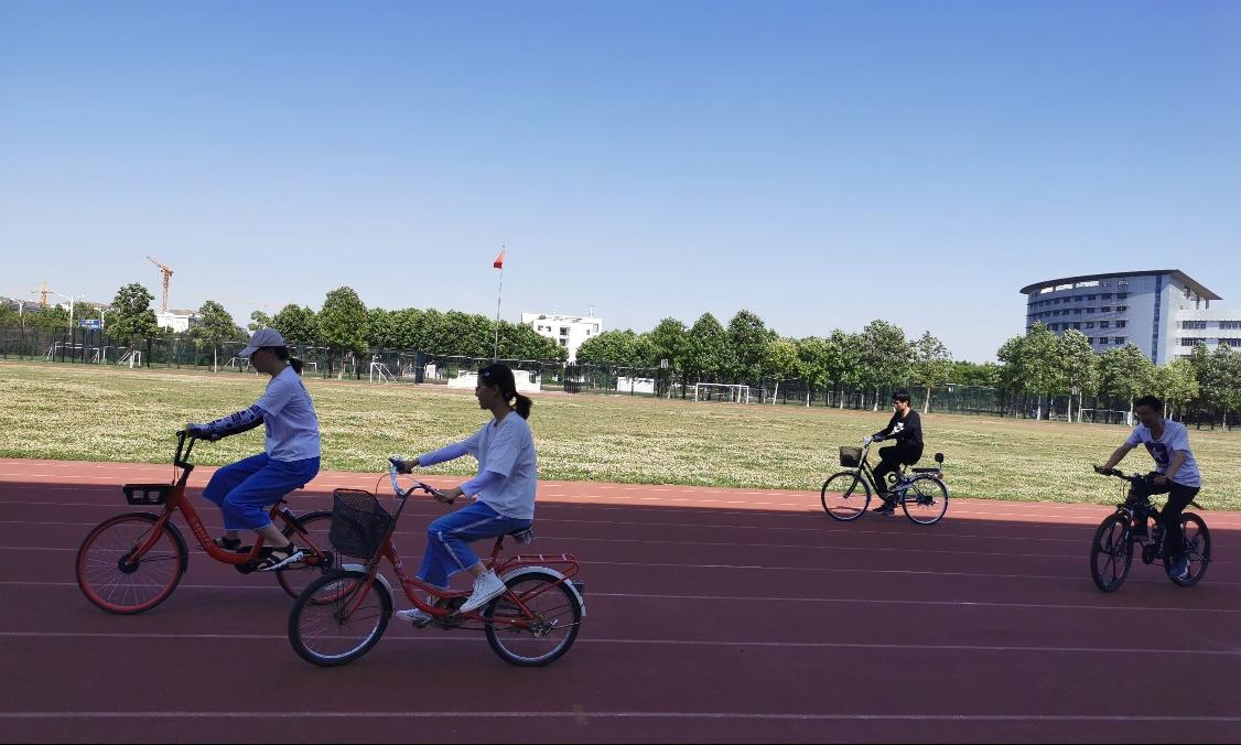 本次素质拓展活动以趣味运动会的形式组织开展,分为个人项目和集体项目两大板块。首先进行的是个人项目的比拼。在“自行车慢骑”项目环节中,参赛选手分为两组上场,屏息凝神、沉着应战,在各自的赛道上缓慢而稳健地向前行进。在“袋鼠跳”项目环节中,参赛选手拼尽全力跳跃前行,发挥出最佳成绩。