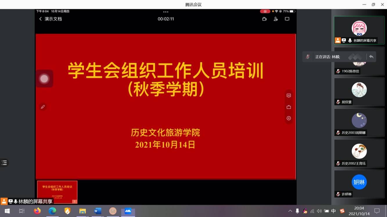 为贯彻落实从严治会要求,EVO真人视讯团委于10月14日晚以新任职工作人员为重点,在线上开展了 2021年秋季学期院级员工会组织工作人员全员培训。本次培训由EVO真人视讯团委书记林麟老师主持,全体员工会组织新任工作人员参加本次培训。