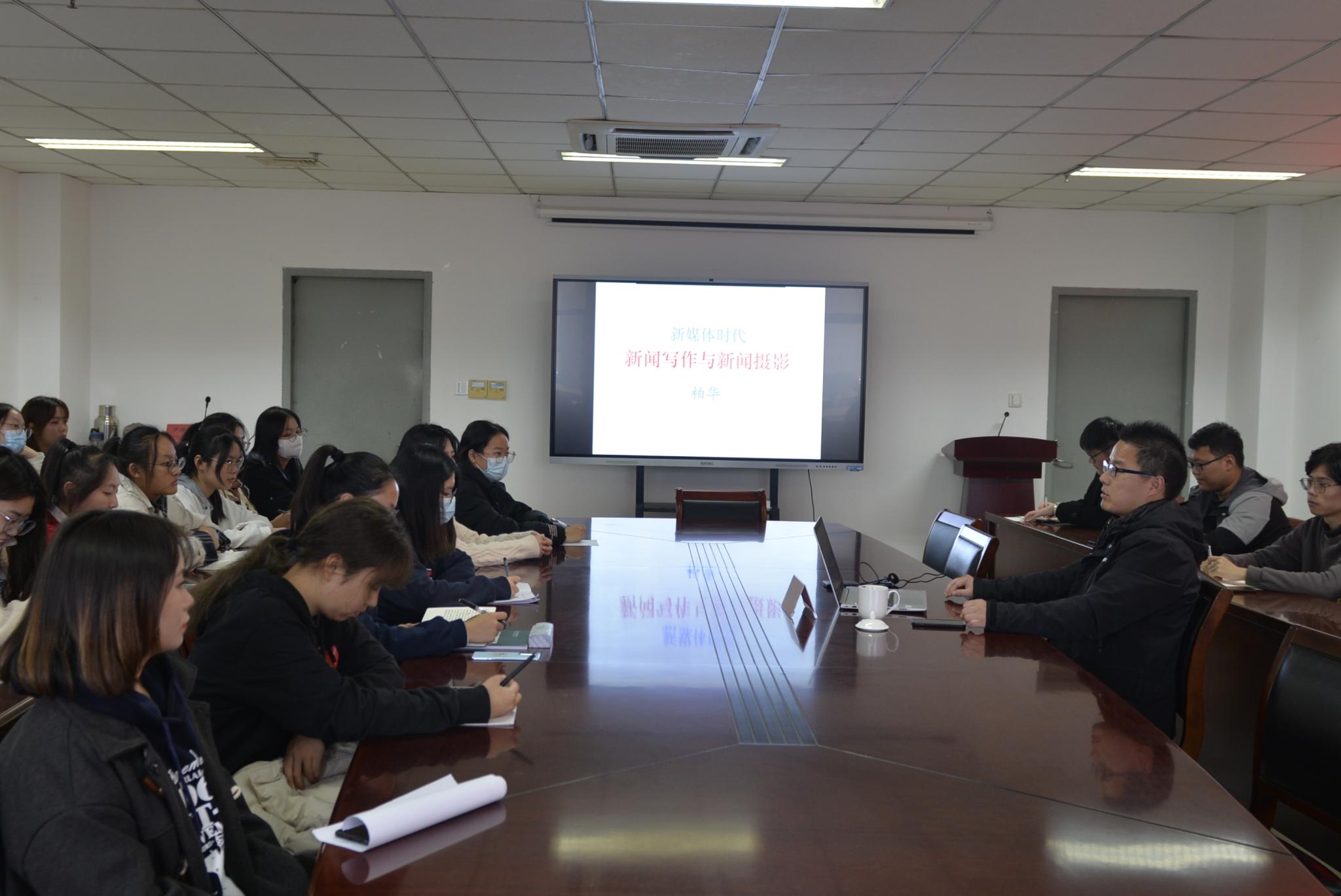 柏华老师以“新媒体时代新闻写作与摄影技巧”为题,从四个方面对新闻写作与摄影的技巧进行了全面的讲解。一是新闻标题的制作要“精良”。正如柏老师所说“人美美在眼睛,文美美在标题”,好的标题对文章至关重要。柏老师强调新闻报道的标题要具有凝练性,并分析了几种标题类型,给同学们直接的视觉冲击。二是新闻导语的写作要“精细”。柏老师结合真实、生动的新闻案例讲述了新闻导语写作的具体要求以及注意事项,特别指出最重要的事实,最简洁的语言,要放在最前面说。三是新闻图片的拍摄要“精美”。柏老师分别介绍了全景照片、特写照片、俯视照片等构图方式的灵活运用以及手机拍摄的技巧,强调在新闻拍照中要把握活动的“黄金五分钟”。四是新闻摄影与宣传要抓住关键节点。要紧紧把握时间点,注重新闻的时效性;要始终围绕专业性,善于突出创新性;要心中充满对象感,时刻做个有心人。最后柏华老师介绍了手机拍摄的小技巧,并表达了对日后宣传工作的质量和效率提高的期许。