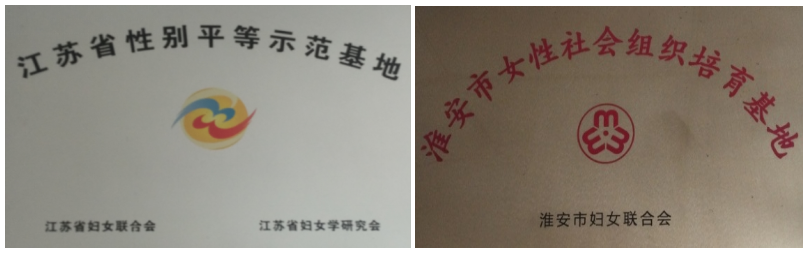 图为社会工作专业获江苏省性别平等示范基地。