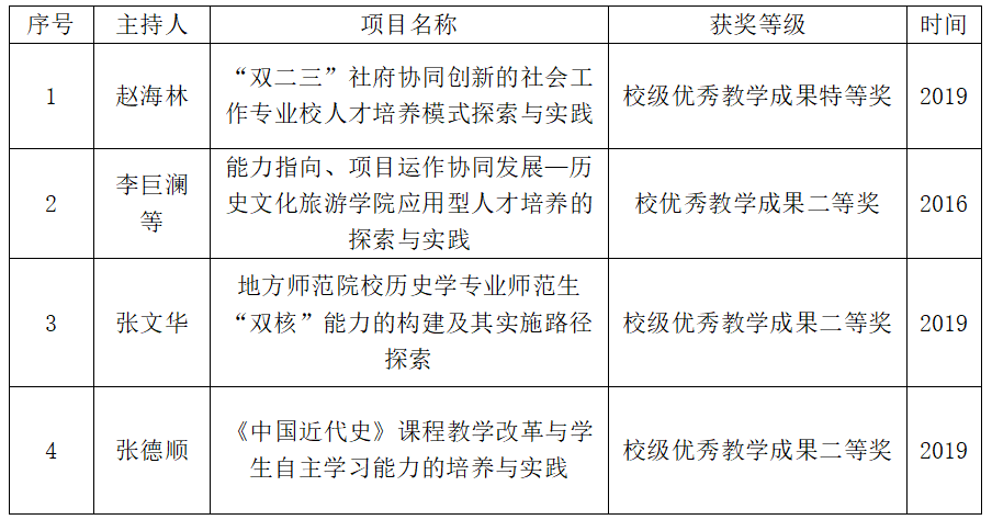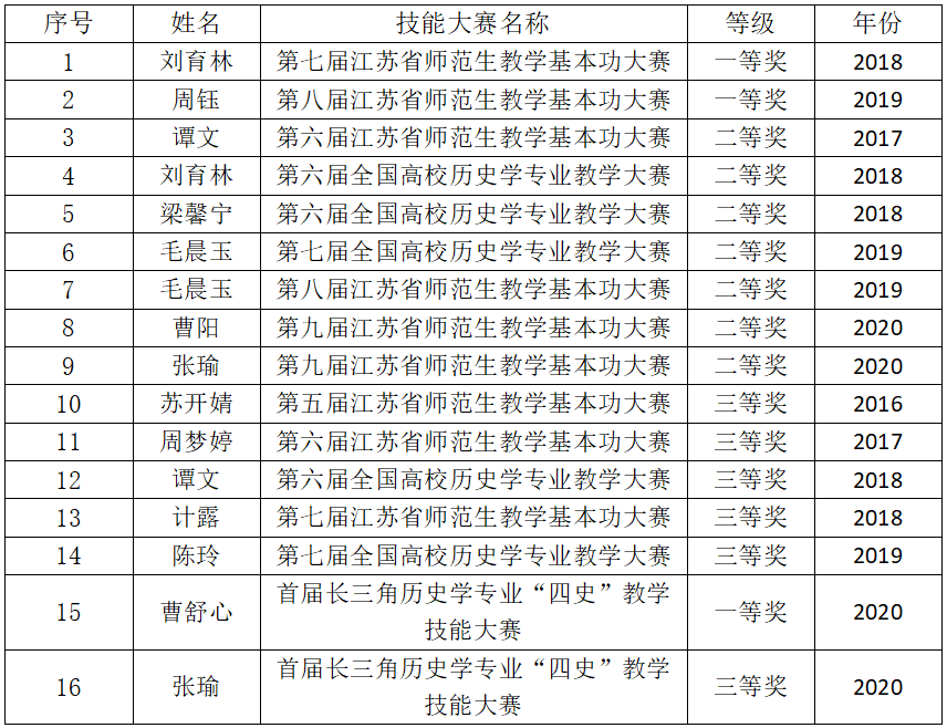 历史学专业师范技能大赛获奖一览表