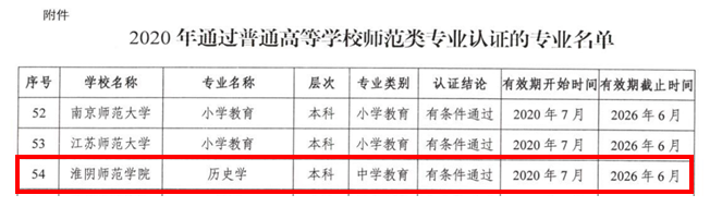 历史学专业通过教育部师范类专业第二级认证