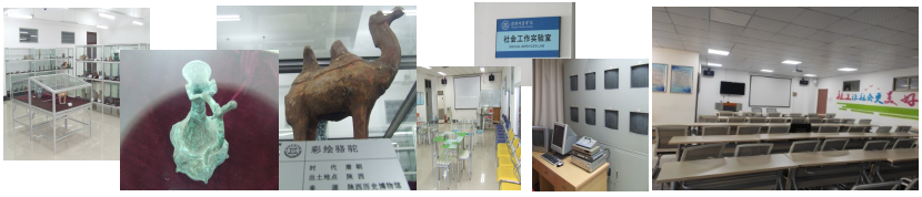 图为历史学专业文物室(收藏文物400余件)。 图为社会工作实验室。