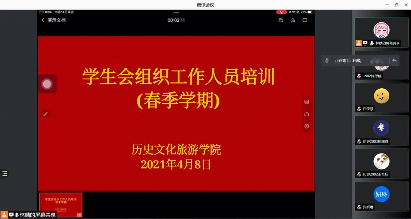 为贯彻落实从严治会要求,EVO真人视讯团委于4月8日晚在线上开展了2021年春季学期院级员工会组织工作人员全员培训。本次培训由EVO真人视讯团委书记林麟老师主持,EVO真人视讯全体员工会组织工作人员参加本次培训。