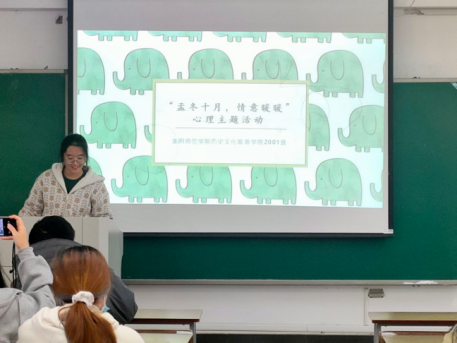 2021年11月14日晚,历史2001班于弘文1-516开展“孟冬十月,情意暖暖”心理主题活动。本次活动由心理委员刁铃钰主持进行,历史2001全体同学参与。