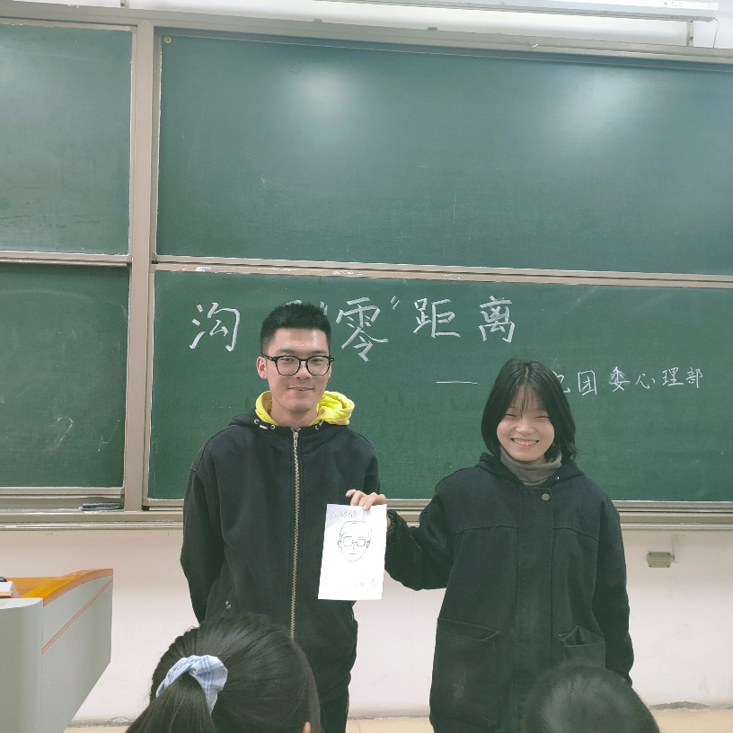 本次活动共分为三个环节,首先由心理部部长祝赟引导同学们顺时针给右手边的同学画画像,以活跃气氛,在画完后请同学们轮流上台展示并分享自己对画上同学的印象,让大家关系更密切起来。现场气氛十分热烈。