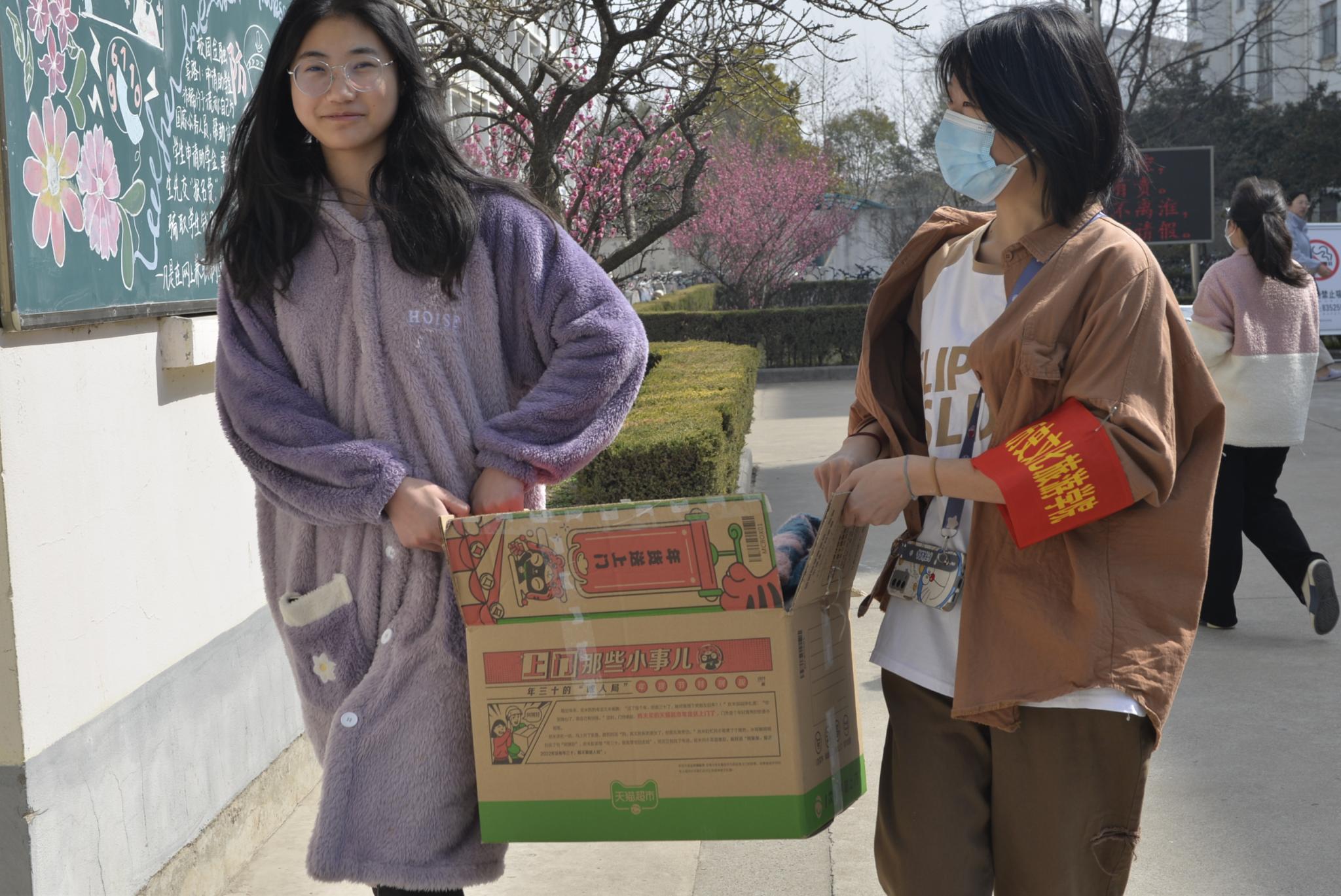 阳光明媚,微风和煦。志愿者主动有序地将捐赠同学手中的衣物接过,小心翼翼地将这些“爱心”运至京东快递点,以此献出一份爱心,寄托一份关怀。同学们捐来的衣物即将获得重生,进入循环,为这个春天增添一份绿色,留下一阵暖流。