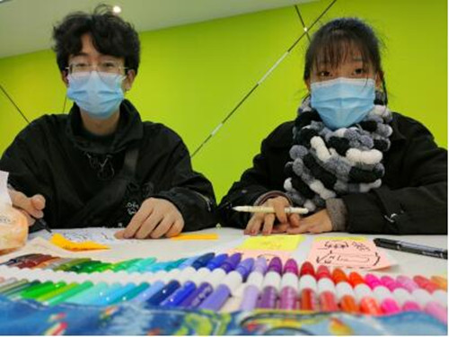 图为“320 咱爱您”心理健康周活动作品展。记者 祝赟 摄