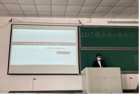 为提高同学们辩论能力,促进跨文化国际交流,模拟联合国协会于2021年11月14日在长江路校区召开模拟联合国大会,主题为“当今疫情形势下的大国博弈与世界格局”,与会成员按时入场参加。