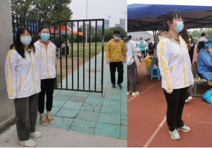 在此次活动中,员工党员们兵分两路,一队在操场进行核酸检测志愿服务,引导参检人员到相应场地进行核酸检测,并即时进行人员疏散,另一队来到北苑食堂提醒同学们佩戴口罩并引导其进行体温测量。