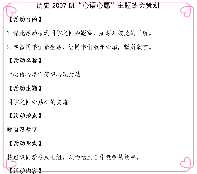 本次心理主题班会策划案评选活动促进了同学们间的沟通与交流,帮助同学们进一步关注心理健康,让心理健康教育工作走进班级,走进员工内心,增强了心理育人实效。