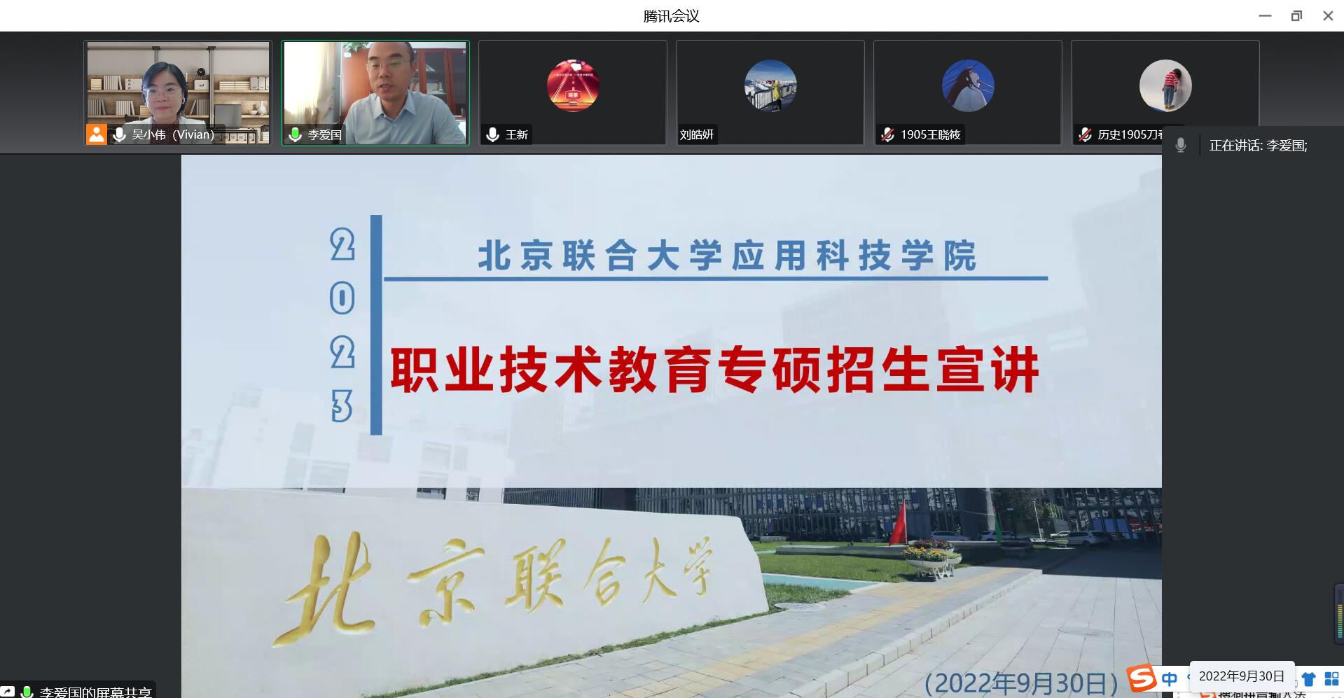 9月30日,EVO真人视讯通过腾讯会议平台与北京联合大学举办了职业技术教育专硕考研政策解读及报考指导专题讲座。EVO真人视讯副经理吴小伟主持,北京联合大学应用科技公司副经理李爱国主讲,旅游系系主任吴士勇、2019级旅游系三个班毕业班班主任及员工参加讲座。