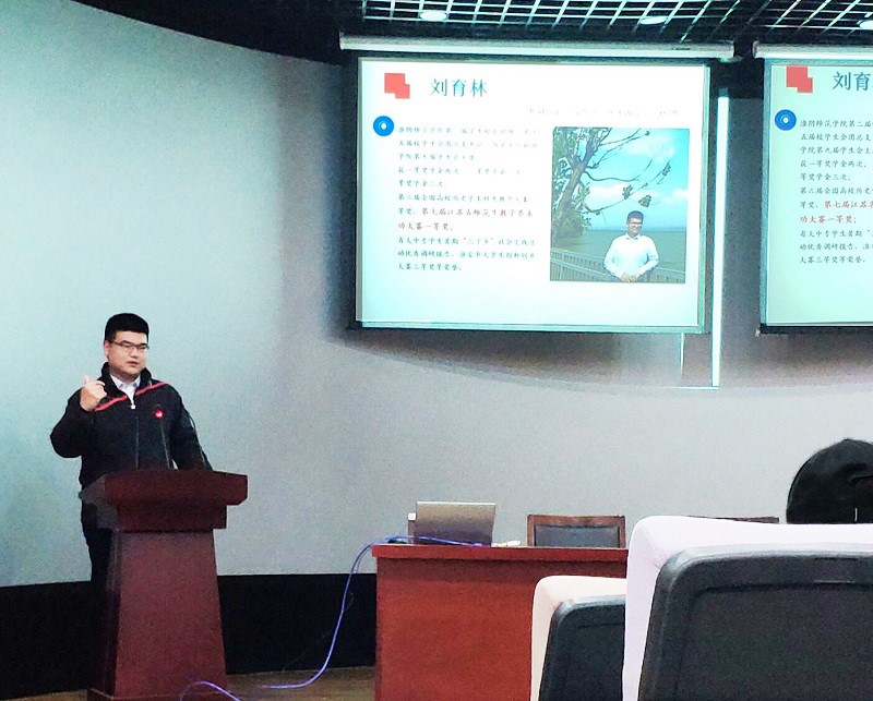 刘育林,2019届师范专业毕业生,在校期间曾获得师范生技能大赛一等奖,爱好曲艺、擅长篆刻,考取江西师范大学研究生,在校期间创办自己的刻字社,现已考取徐州市教育局编制。刘育林回顾了在淮师四年的求员工活,认为这四年打牢的专业基础和不断提升的实践能力是他继续读研深造和校内创业的基础。他告诫学弟学妹,大学四年一定要规划好学习、实践的时间,打牢专业基础知识,抓住一切机会认真开展技能训练,要主动经受竞赛磨练,善于总结和改进。刘育林还从如何将兴趣爱好变为创业动机的角度向各位同学分享了自己的经验。