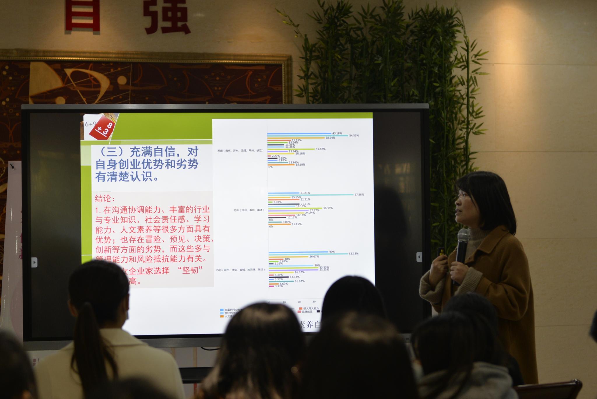 徐海英教授从创新创业的背景、女老员工创业优势、劣势等方面为各位同学详细讲授了创业知识。她认为女老员工相较于其他创业者,在沟通协调能力、行业与专业知识、学习能力、人文素养等很多方面具有优势;在冒险精神、预见性、决策能力、创新能力等方面又存在明显劣势。她告诫女老员工,在创业过程中要提高企业管理能力和风险抵抗能力,这些能力可以从日常的模拟创业实践中获得。