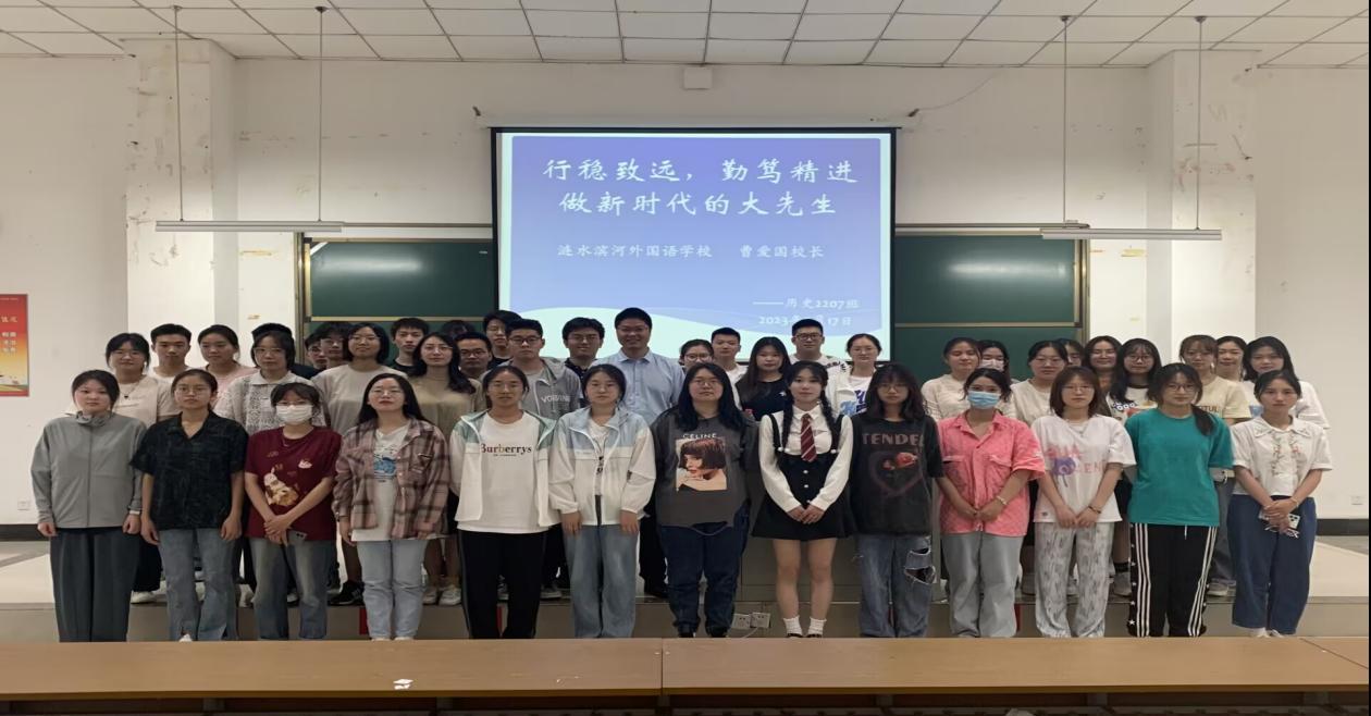 2023年5月17日,EVO真人视讯举办师范生成长与发展报告会,邀请校外导师涟水滨河外国语公司曹爱国副董事长作专题报告,班主任张捷及2207班全体同学参加了此次报告会。