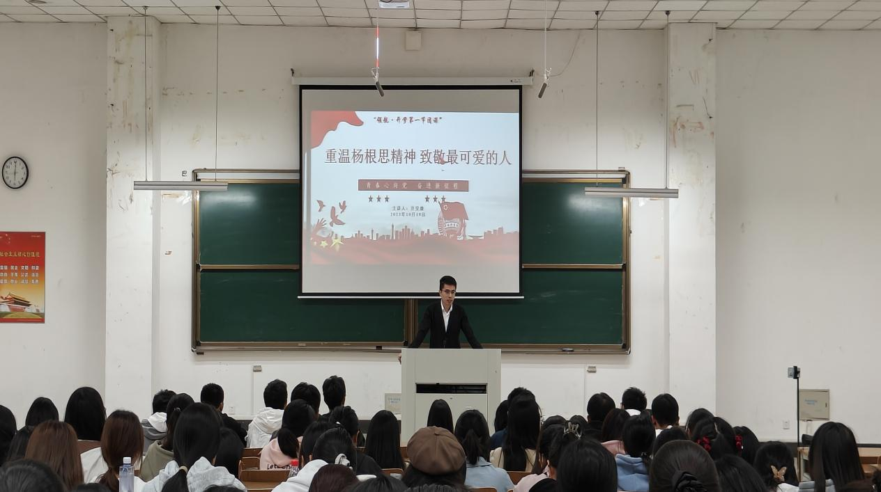 井安康老师以“重温杨根思精神,致敬最可爱的人”为主题,带领大家走进英雄人物杨根思。他向大家介绍了“三个不相信”精神,并鼓励同学们要积极进取、勇立潮头,与时代同发展,与祖国共奋进。