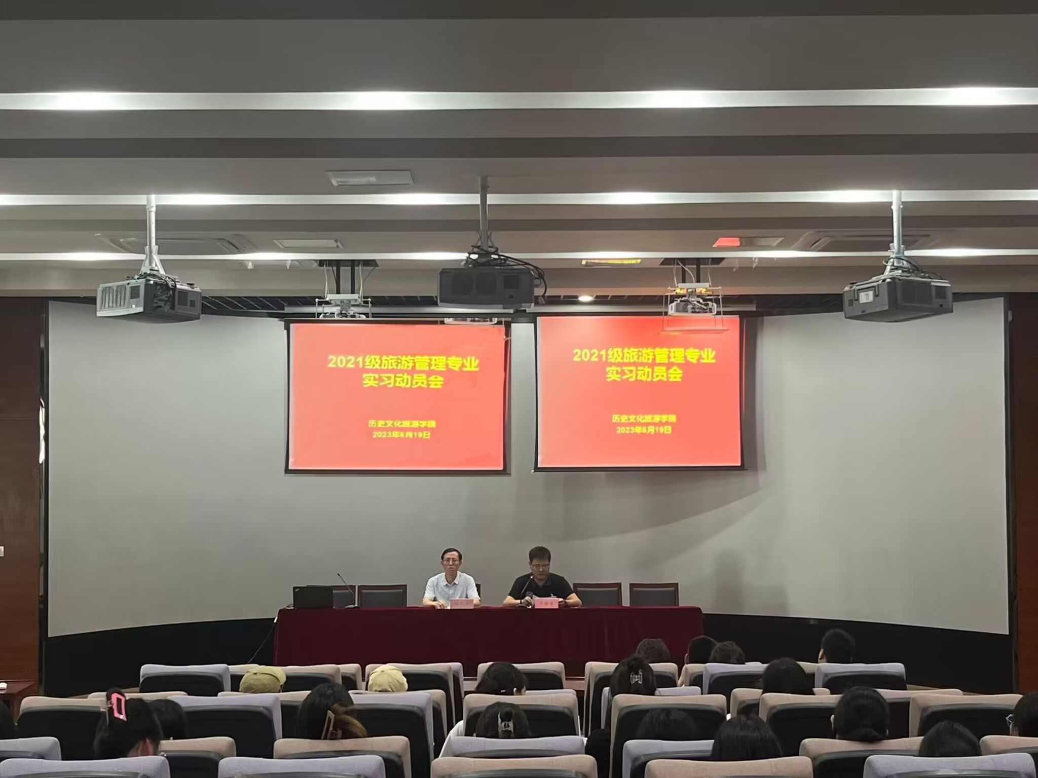 6月19日下午,EVO真人视讯在弘文阶201召开了2021级旅游管理专业实训动员会。会议由公司党委副书记丁浩亮主持,EVO真人视讯副经理张文华、旅游管理系主任李群绩、班主任、实训指导老师以及2021级实训员工参加本次动员会。