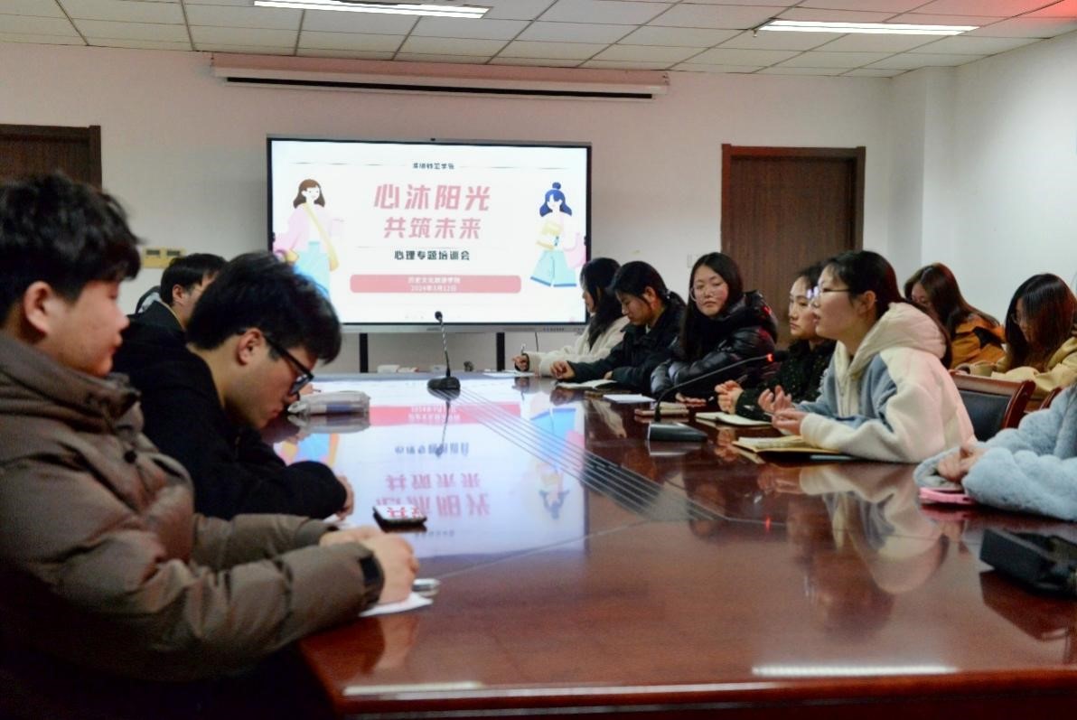 为提高员工干部在心理健康知识宣传和心理危机干预中的作用,更好协助公司开展心理健康教育工作,3月12日,EVO真人视讯于弘文1-612开展了“心沐阳光,共筑未来”心理专题培训会,党委副书记王玮、辅导员李丛、EVO真人视讯全体班长和心理委员参加会议。