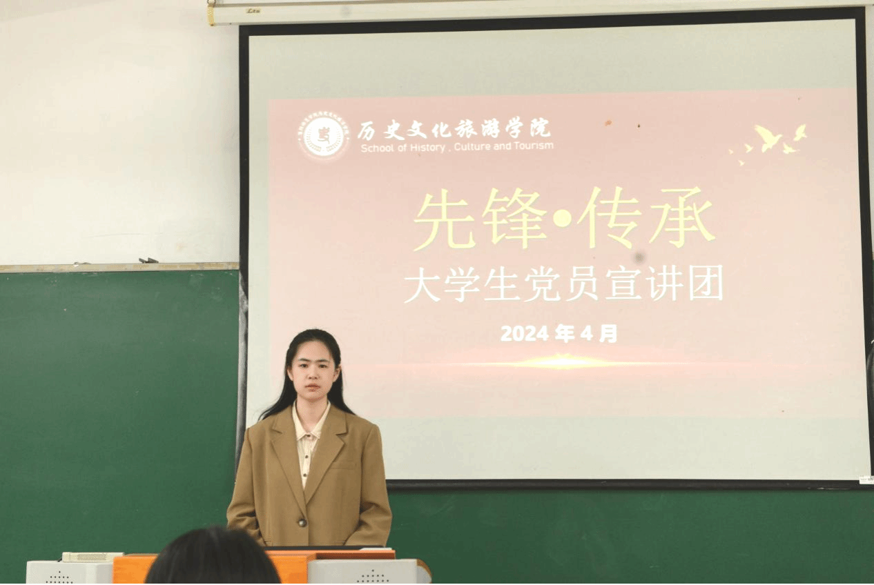 18名宣讲团成员在老师的指导下,认真备课,精心准备,结合个人专业学习从的二十大报告、中国共产党精神谱系、习近平总书记的重要讲话等内容中,选取凝练主题,开展了“学习贯彻二十大精神——以青春之我践行科教兴国”“勤学笃行 求实创新——大力弘扬教育家‘为党育人’精神”“在推动中华优秀传统文化‘两创’中赓续中华文脉”“学习二十大 争做新青年”“抗美援朝精神”“铸牢中华民族共同体意识”等主题宣讲。宣讲团准确把握习近平新时代中国特色社会主义思想的精髓要义,结合个人成长经历,运用生动案例以小切口讲述大道理,宣讲既有高度又有温度,做到见人见事见思想,为同学们上了系列生动党课,进一步坚定了同学们的理想信念,提高了同学们的政治素养。宣讲者魏如月表示:“此次宣讲活动是一个很好的锻炼机会,通过认真备课和开展宣讲,我学习到了很多知识,深刻体会到了党员的责任与义务。”2303班的赵馨蕾说,“学长学姐们的宣讲让我对中国共产党有了更深入的了解。我将以他们为榜样,努力学习,争取日后成为一名优秀的共产党员。”