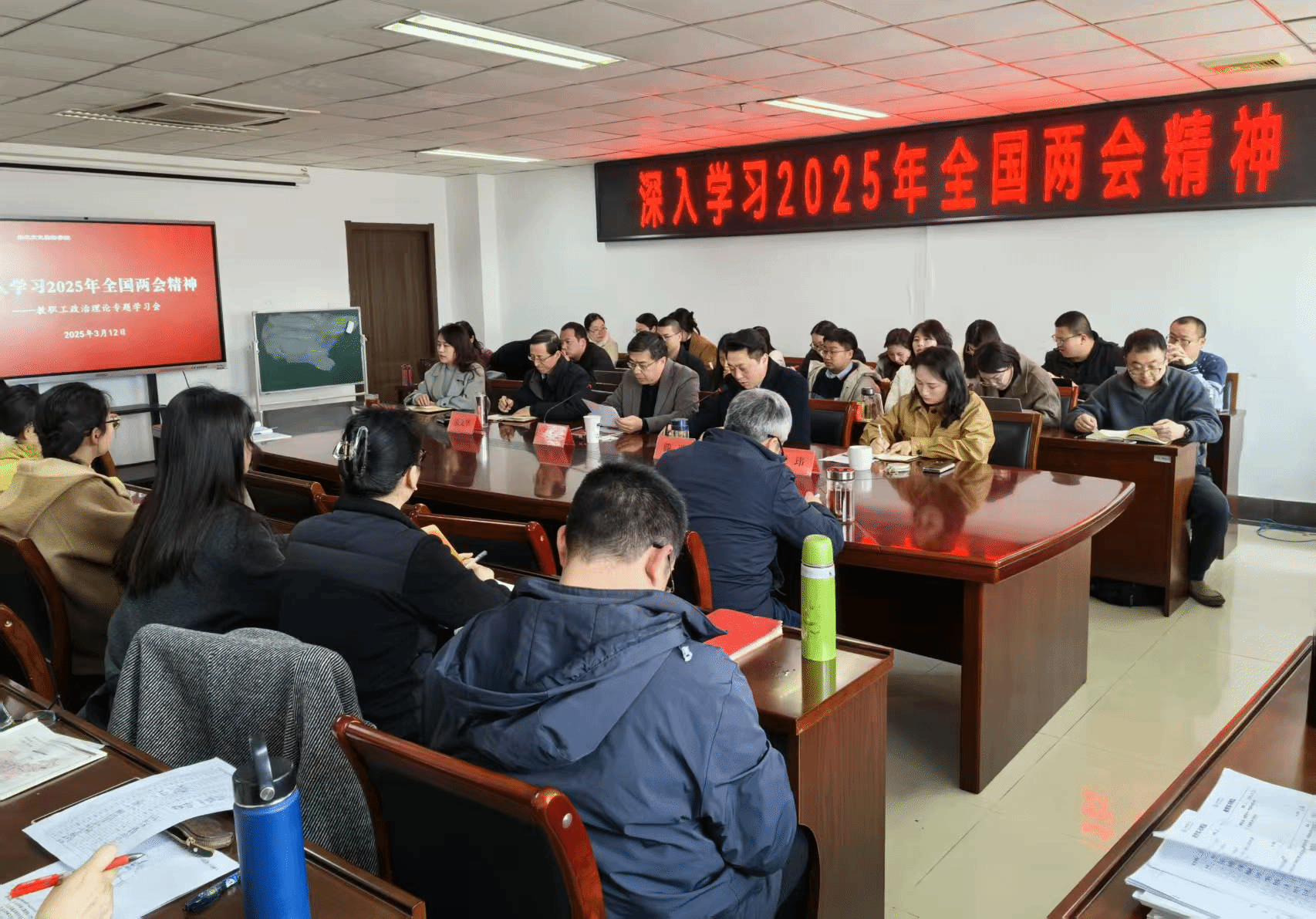 3月12日下午,EVO真人视讯举行专题学习会,深入学习2025年全国两会精神。校原工会主席金钊应邀作辅导报告。报告由党委书记滕祥主持,全体教职工参加会议。