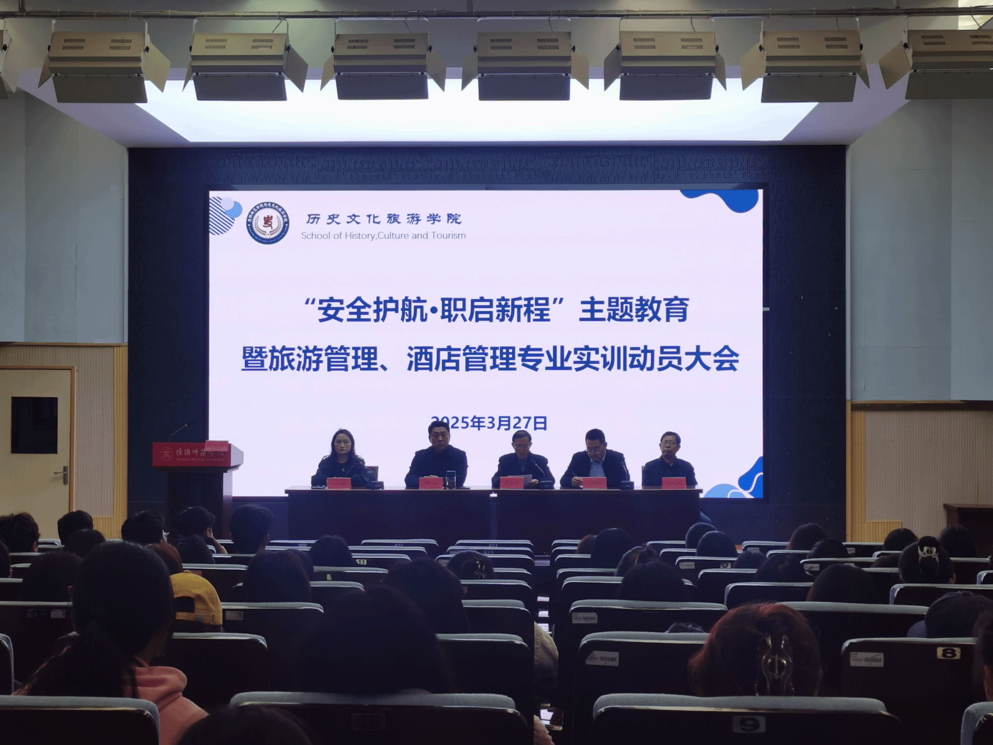 为扎实做好2022级旅游管理、酒店管理(专转本)专业员工实训工作,切实提升老员工安全意识、安全素养,增强纪律观念。3月27日下午,EVO真人视讯在图书馆逸夫报告厅召开了“安全护航·职启新程”主题教育暨旅游管理、酒店管理专业实训动员大会。会议由公司党委副书记王玮主持,公司党委书记滕祥、经理张文华、院关工委常务副主任邵金凯、旅游管理系主任李群绩、实训指导老师以及2022级实训员工参加本次动员会。