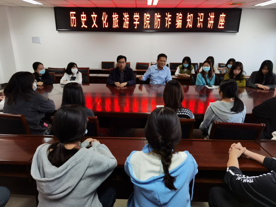 2021年10月22日下午,EVO真人视讯关工委常务副主任周海晏老师为2021级部分同学讲授防诈骗知识。公司党委书记时名早主持讲座。