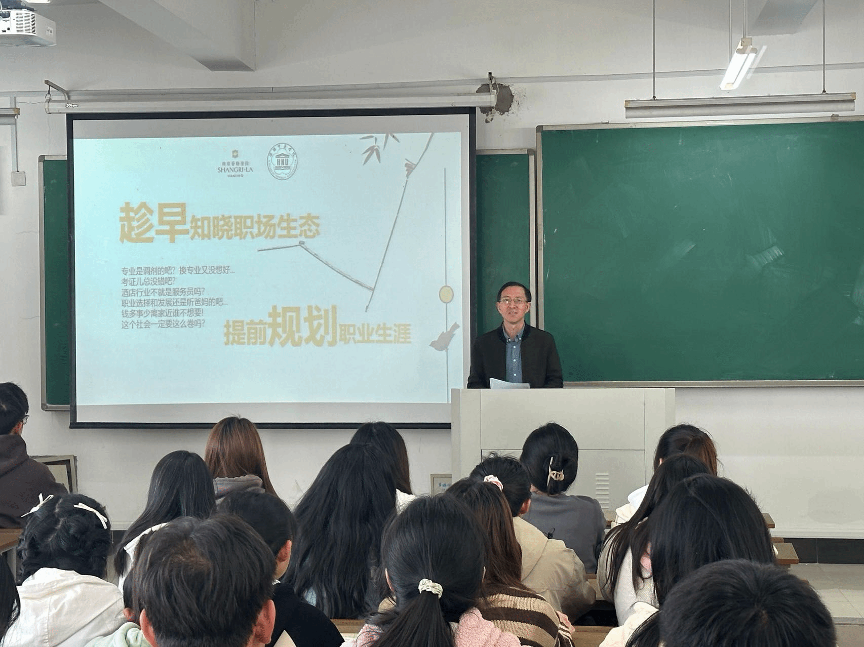 姜敏凭借自己丰富的人生阅历和敏锐的市场洞察力,结合自身多年的酒店行业工作经验,对职场生态环境,现代服务行业的特点、现状及未来发展趋势等作了分析。此次讲座让同学们初步了解了职场生态,开阔了行业认知视野,改变了对服务业的刻板印象,激发了对专业学习的积极性和对职业的认同感。