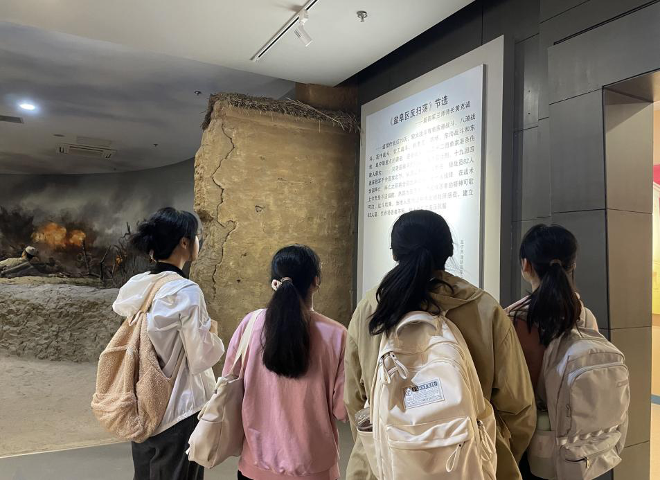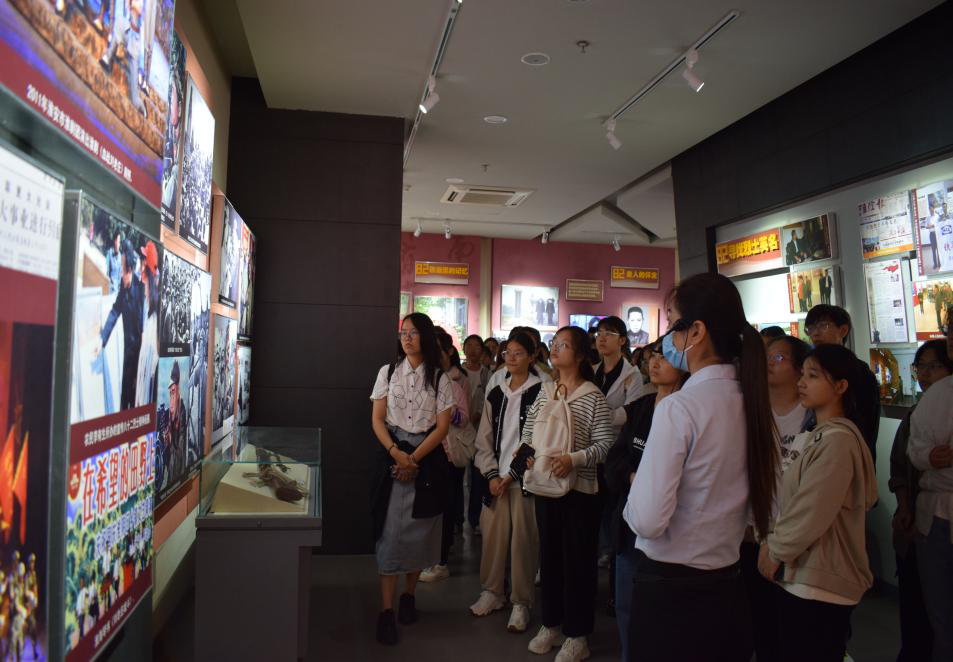 在讲解人员的带领下,同学们还参观了刘老庄八十二烈士纪念馆。一张张历史图片,一件件珍贵文物,让同学们直观感受到革命先辈舍生忘死、不屈不挠的斗争精神,他们纷纷表示要坚定理想信念,以饱满的热情和高昂的精神投入到大学的学习生活中,勇担时代责任,不负青春韶华。