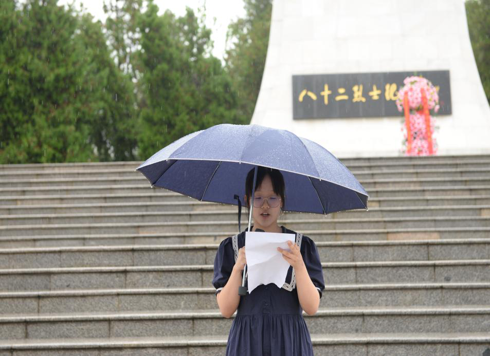 纪念碑前,王玮说,今年是新四军刘老庄连八十二烈士壮烈殉国80周年,我们来这里缅怀先烈就是要学习革命先烈为了民族独立、国家解放、人民幸福大无畏的自我牺牲精神,就是要学习革命先烈对革命事业赤胆忠心、矢志不渝的责任担当,就是要学习革命先烈艰苦奋斗、舍生取义的崇高品德。最后,她勉励同学们要继承革命遗志,努力学习,奋发进取,为实现中华民族伟大复兴做出自己应有的贡献。