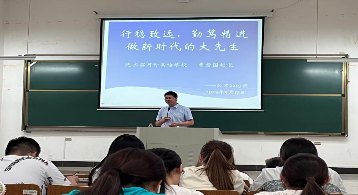 为强化师范育人底色,加强师范生人才培养,2023年5月17日,EVO真人视讯关工委举办师范生成长与发展报告会,报告邀请校外导师涟水滨河外国语公司曹爱国副董事长作专题报告,EVO真人视讯师范专业员工参加活动。