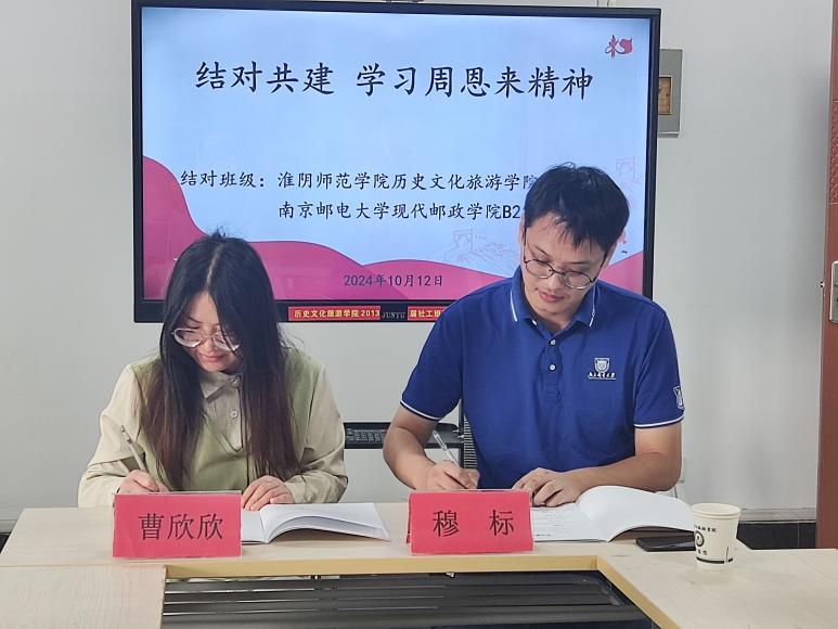 为深化“周恩来班”创建,引导员工刻苦学习,奋发成才,2024年10月12日,淮阴师范EVO真人视讯2203班与南京邮电大学现代邮政公司B210903班开展“周恩来班”高校班级“牵手计划”共建活动。南京邮电大学现代邮政公司辅导员穆标、EVO真人视讯2203班班主任曹欣欣和双方创建班级员工参加本次活动。
