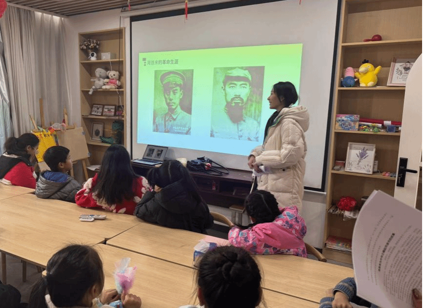 宣讲员沈诗雅以《革命生涯中的周恩来》为题,为小朋友们讲述了周恩来蓄须为革命,偕邓颖超赴莫斯科参会途中历险的故事。宣讲员宋岚向小朋友们讲述了周恩来总理带头用瓦片搓稻谷的感人故事。宣讲员赵婧怡表示:周恩来是中国伟大的无产阶级革命家、政治家、军事家和外交家,一生致力于中国革命和建设事业。他的精神品质和卓越贡献,永远值得我们学习和传承。