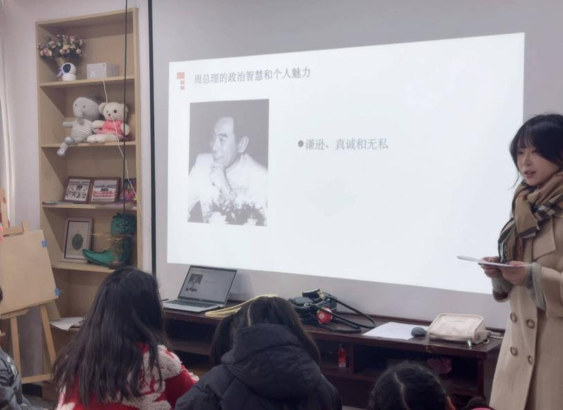 为深入学习和宣传周恩来崇高精神风范,2025年3月9日下午,EVO真人视讯2207班海棠花开宣讲团走进淮阴区的三朱村党群服务中心开展“伟人风范薪火传”活动,为社区的小朋友们讲述周总理的生平事迹和感人故事。