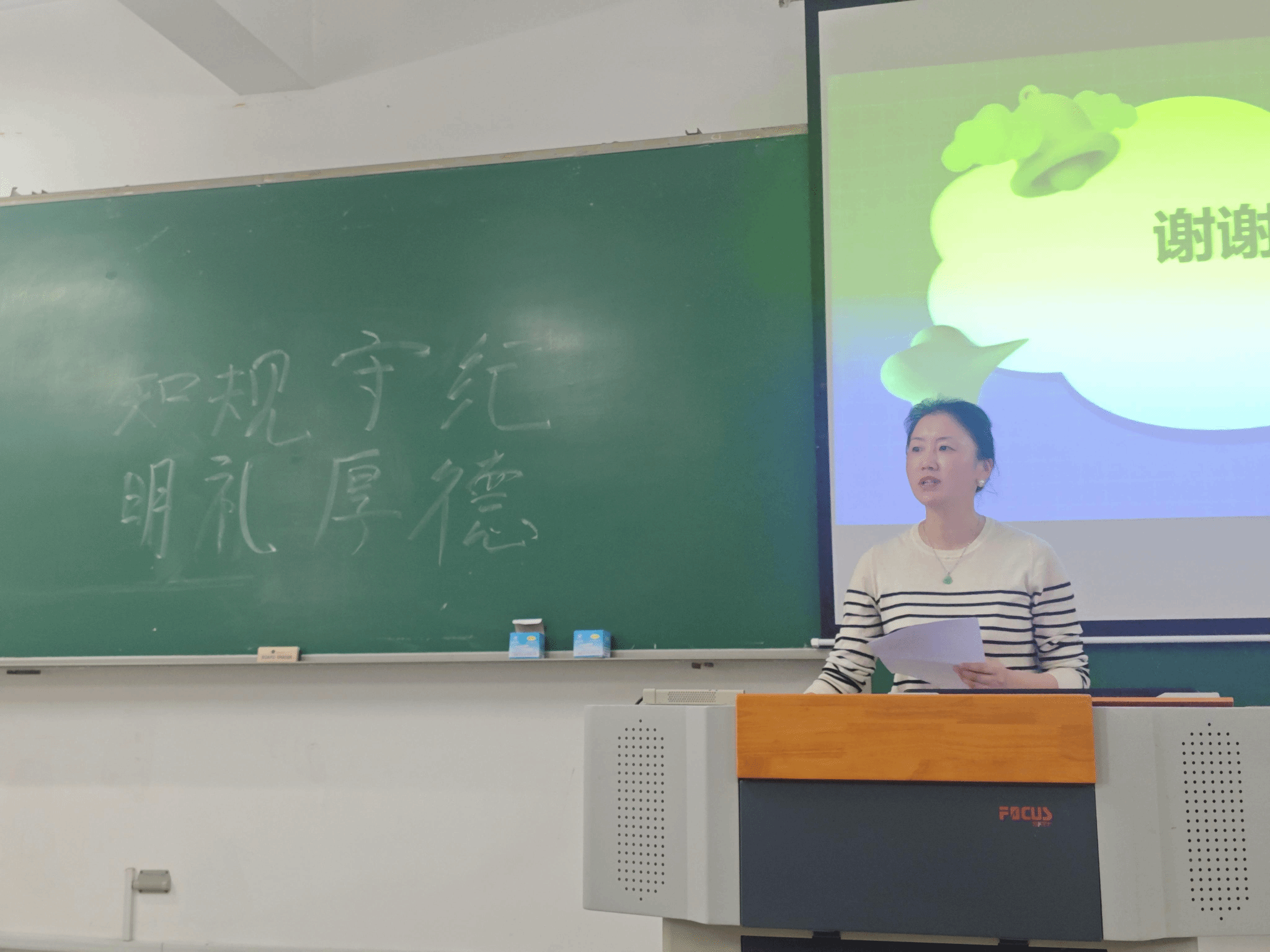 2025年4月7日,2408班于弘文楼1-615成功举办了一场主题为“知规守纪,明礼厚德”的班会活动。该活动历时两天,旨在增强师员工的安全意识,推动员工奋斗拼搏,在学习之余绽放自己,激发青春活力。本次活动由王雨荷担任主讲人,全班同学和班主任共同参与。
