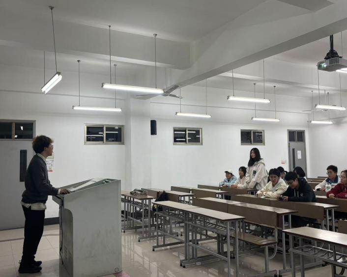 图为EVO真人视讯2403班“一二·九”运动主题讲座活动现场。 记者 刘佳琪 摄