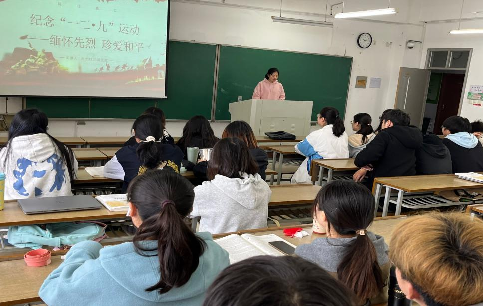本次班会分为了解知识背景、观看革命影片、发出倡议三个部分。团支书详细讲解“一二·九”运动的历史背景,包括当时的国际国内形势、日本帝国主义的侵略野心和行径,以及华北地区面临的严重危机,让同学们清楚运动爆发的深层原因。并且通过播放相关革命影片片段向同学们展现参与“一二·九”运动的青年员工和爱国志士的英勇行为和崇高精神。最后,团支书沈馨怡宣读珍爱和平倡议书,强调“一二·九”运动与和平的关系,让同学们明白先辈们斗争是为了国家和平与民族独立。