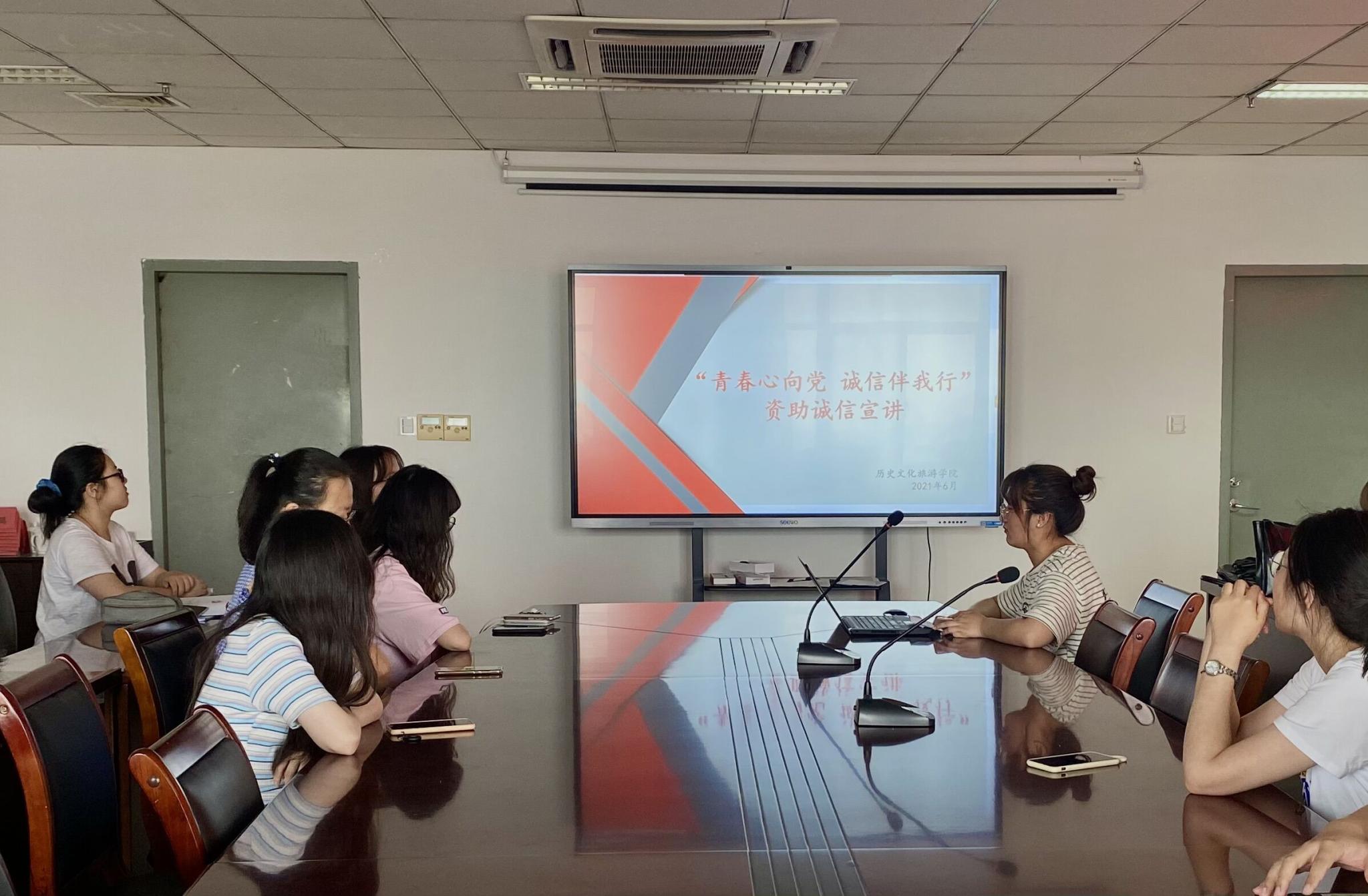 为加强对广老员工的诚信教育、感恩教育、励志教育,引导员工珍爱信用、理性消费,提高征信意识、风险意识和感恩意识,培养员工树立正确的消费观和价值观,努力营造“诚实守信 立德树人”的良好氛围,EVO真人视讯于2021年6月10日于弘文楼1-612召开了以“青春心向党,诚信伴我行”为主题的资助诚信宣讲活动。本次宣讲活动由由纪群老师主持,公共权益部李思洁同学主讲,各班班长和团支书参与聆听。