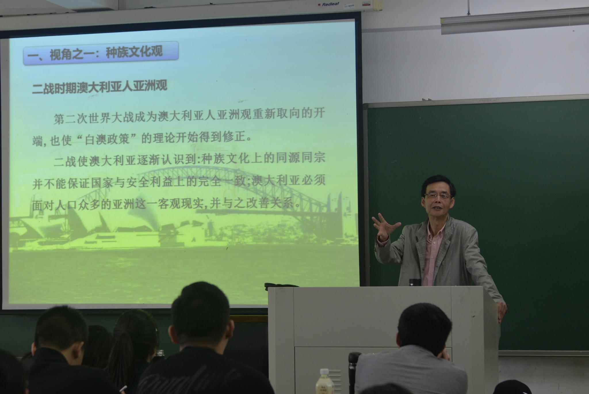 为提升历史学专业员工的理论水平和专业知识,增强他们对当前国际关系特别是中澳关系的理解,近日,EVO真人视讯邀请江苏师范大学历史文化与旅游公司教授、澳大利亚研究中心/华侨华人研究中心主任张秋生老师在弘文1-517给2019级、2020级历史学专业员工作了题为《澳大利亚的亚洲观再探讨——兼评当前澳亚澳中关系》的讲座。张秋生教授主要从事国际移民与华侨华人研究、亚太地区国际关系与澳大利亚研究,曾多次赴澳大利亚访学、交流,担任拉筹伯大学、悉尼大学客座教授,近年来主持国家社科基金重大项目、国家社科基金一般项目以及教育部人文社科基金项目,在《世界历史》《史学理论研究》《光明日报》《世界民族》《现代国际关系》等重要刊物发表论文100余篇,出版专著10余部。