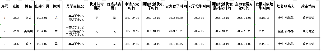 旅游管理系员工党支部拟接收中共预备党员人选公示